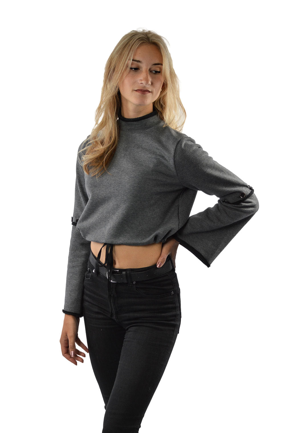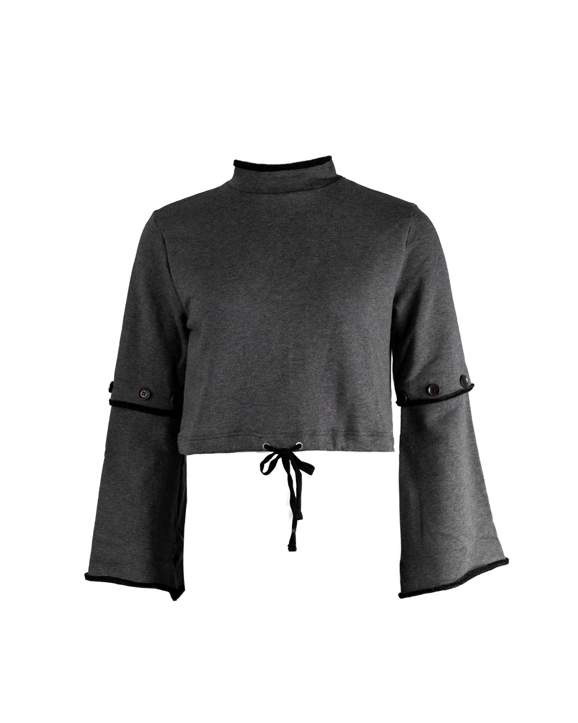 The long sleeves have a button placket and can be removed as desired. They give the top a unique look.