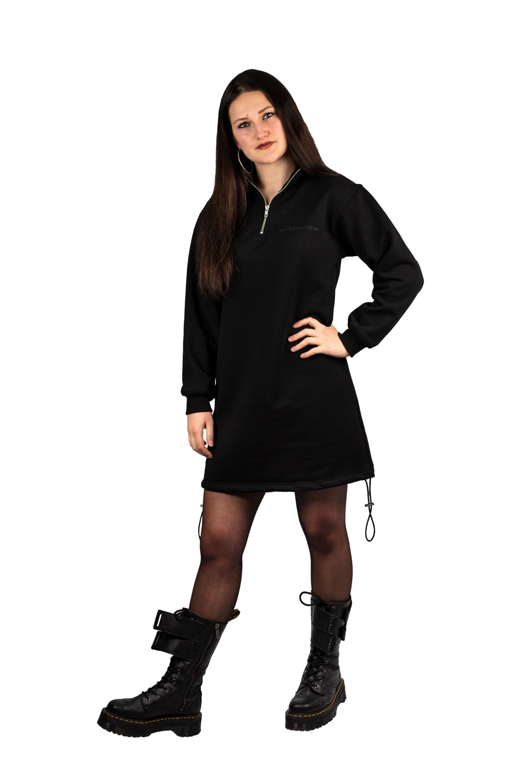 Cette robe pull allie le confort d'un sweat-shirt à la polyvalence d'une robe.