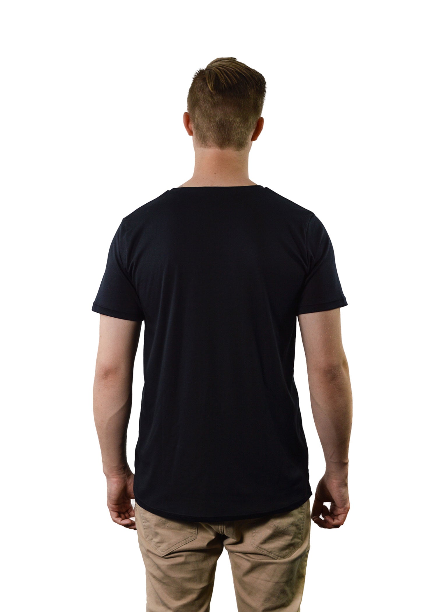 Dieses klassische, schwarze T-Shirt ist ein schlichtes, vielseitig kombinierbares Basic für Herren.