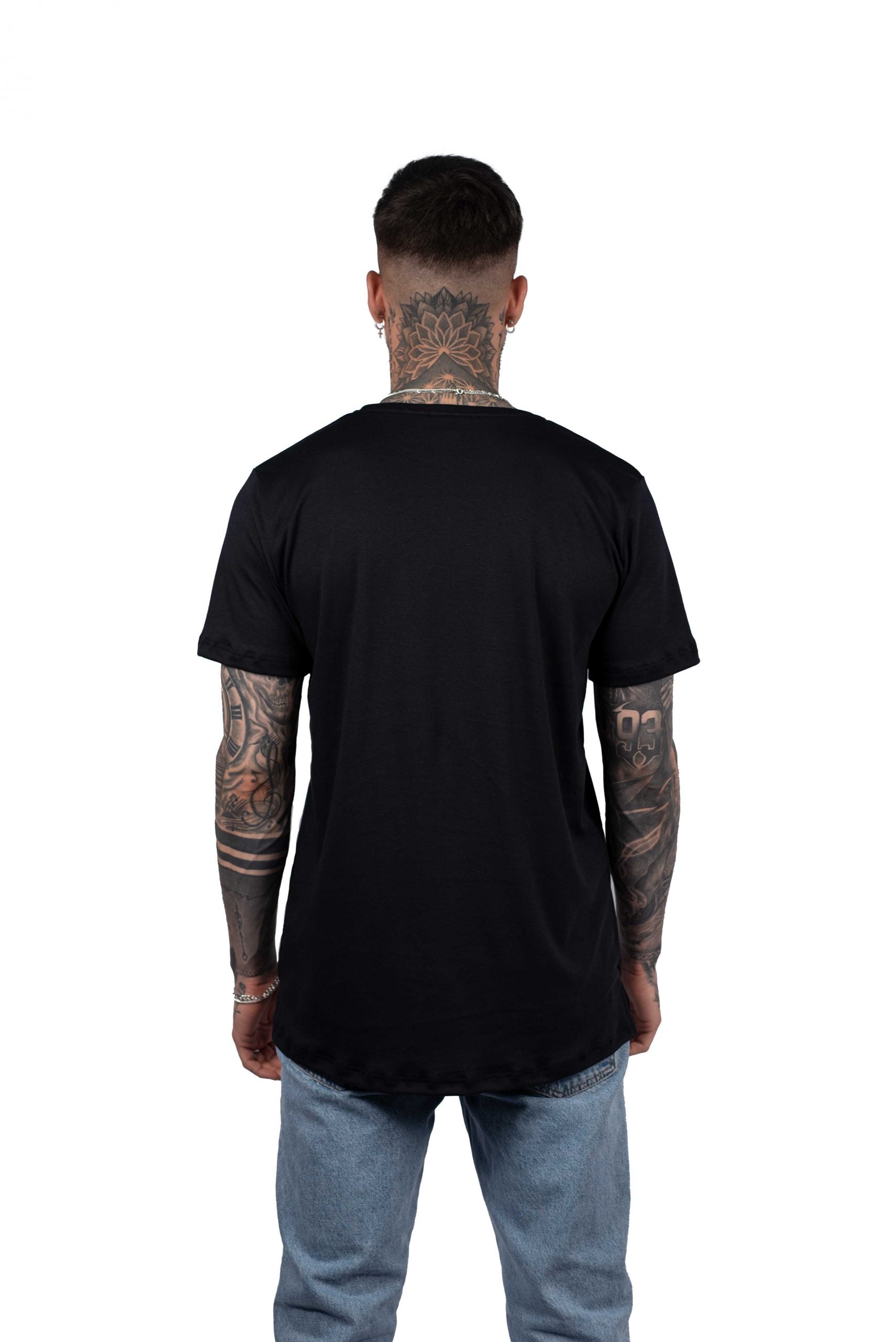Dieses klassische, schwarze T-Shirt ist ein schlichtes, vielseitig kombinierbares Basic für Herren.