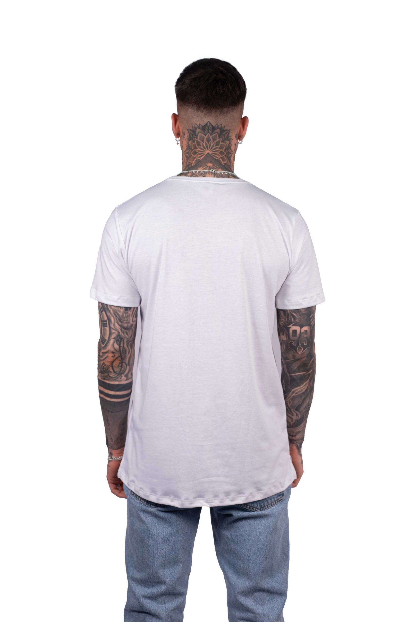 Dieses klassische, weiße T-Shirt ist ein schlichtes, vielseitig kombinierbares Basic für Herren.