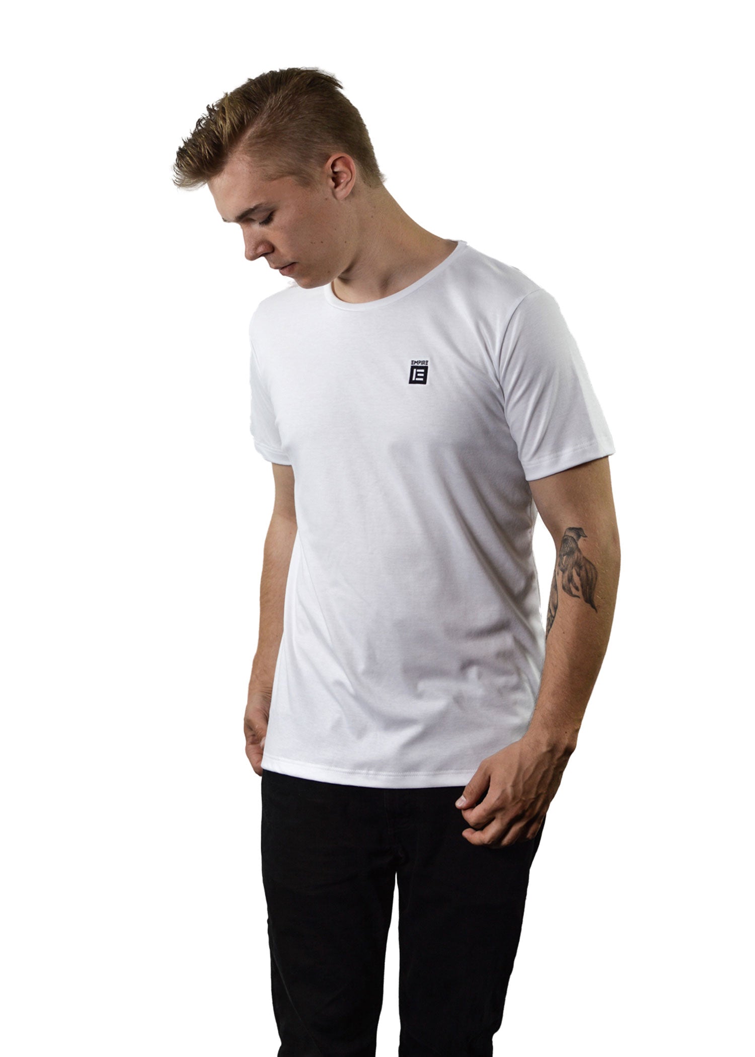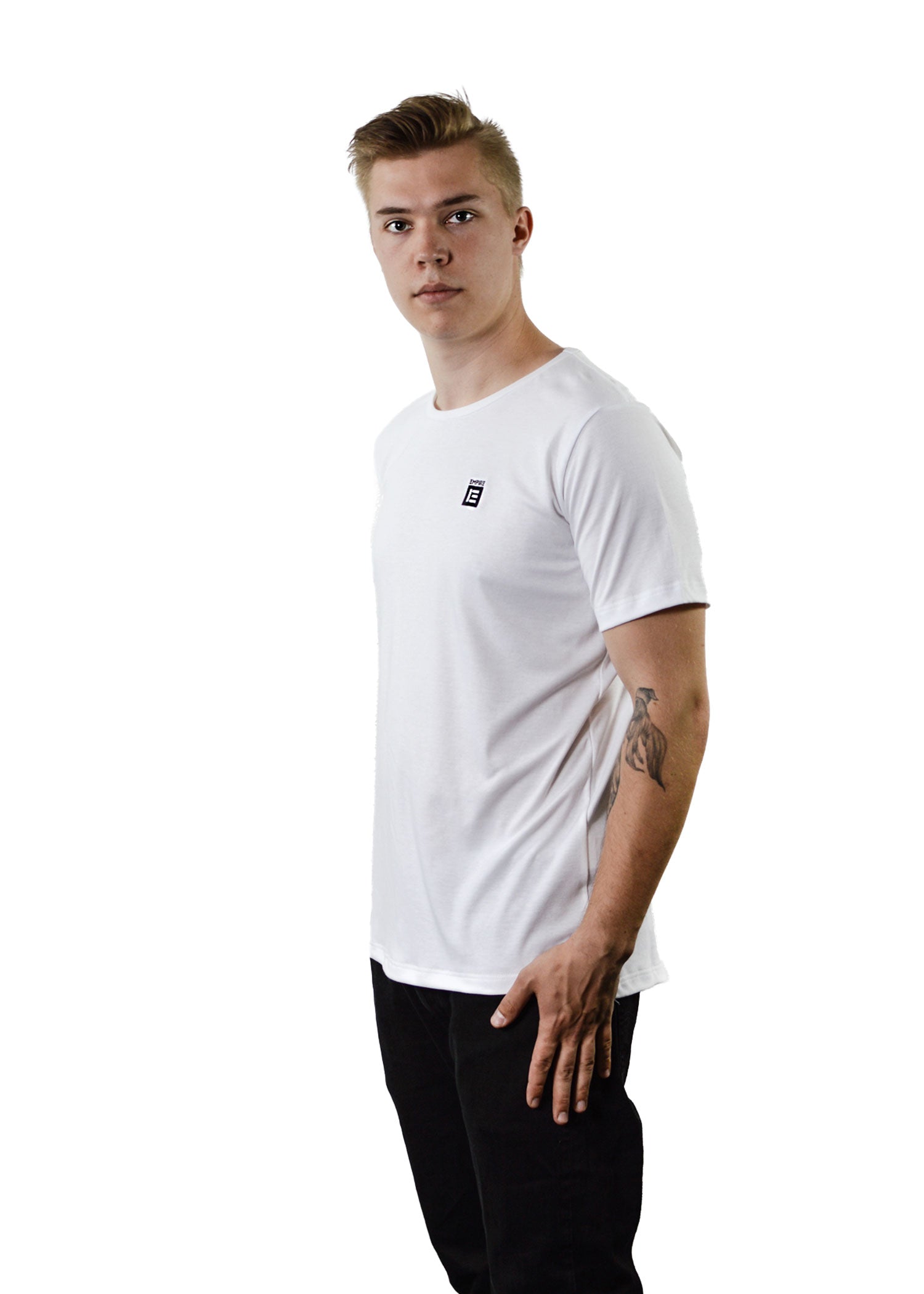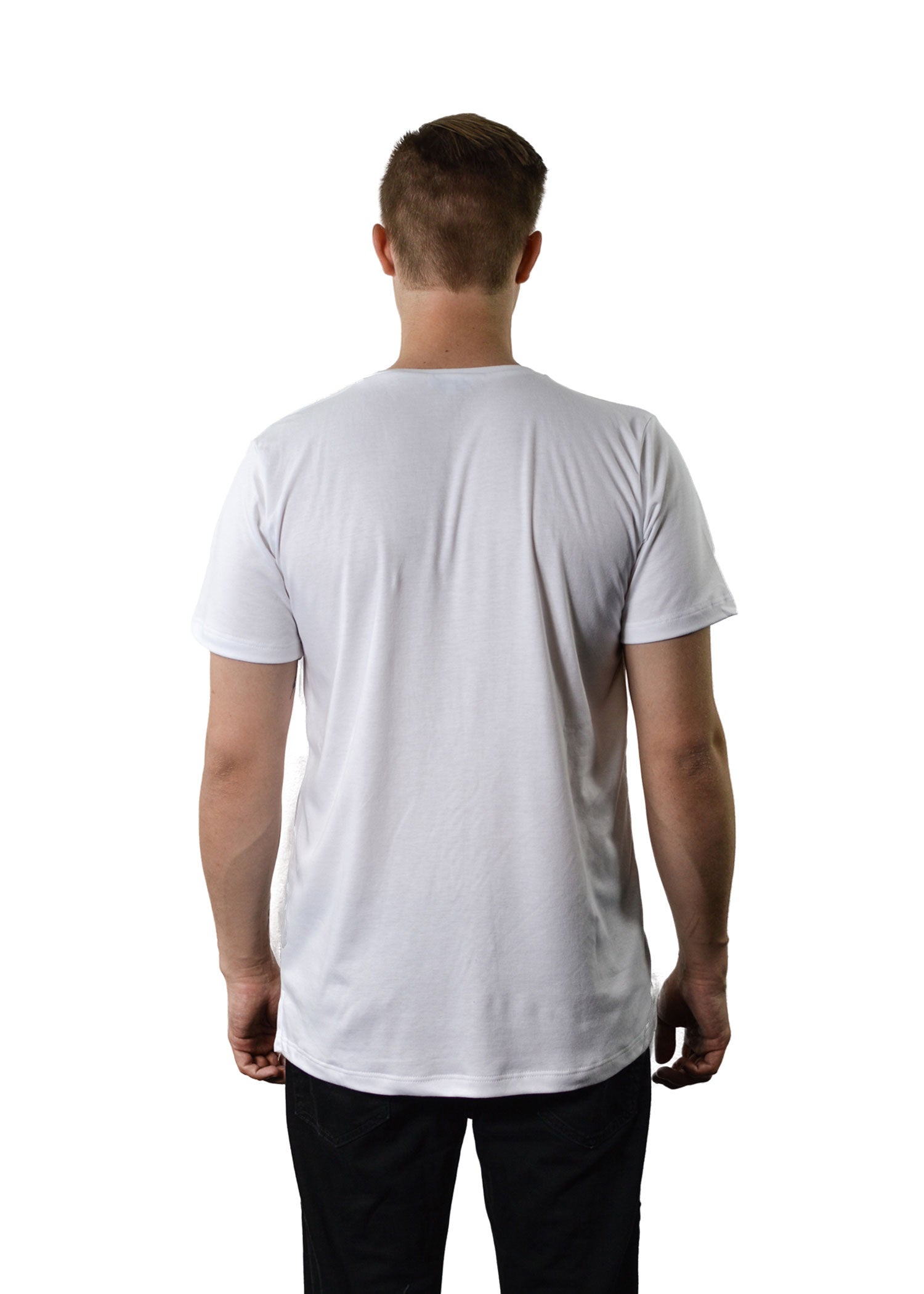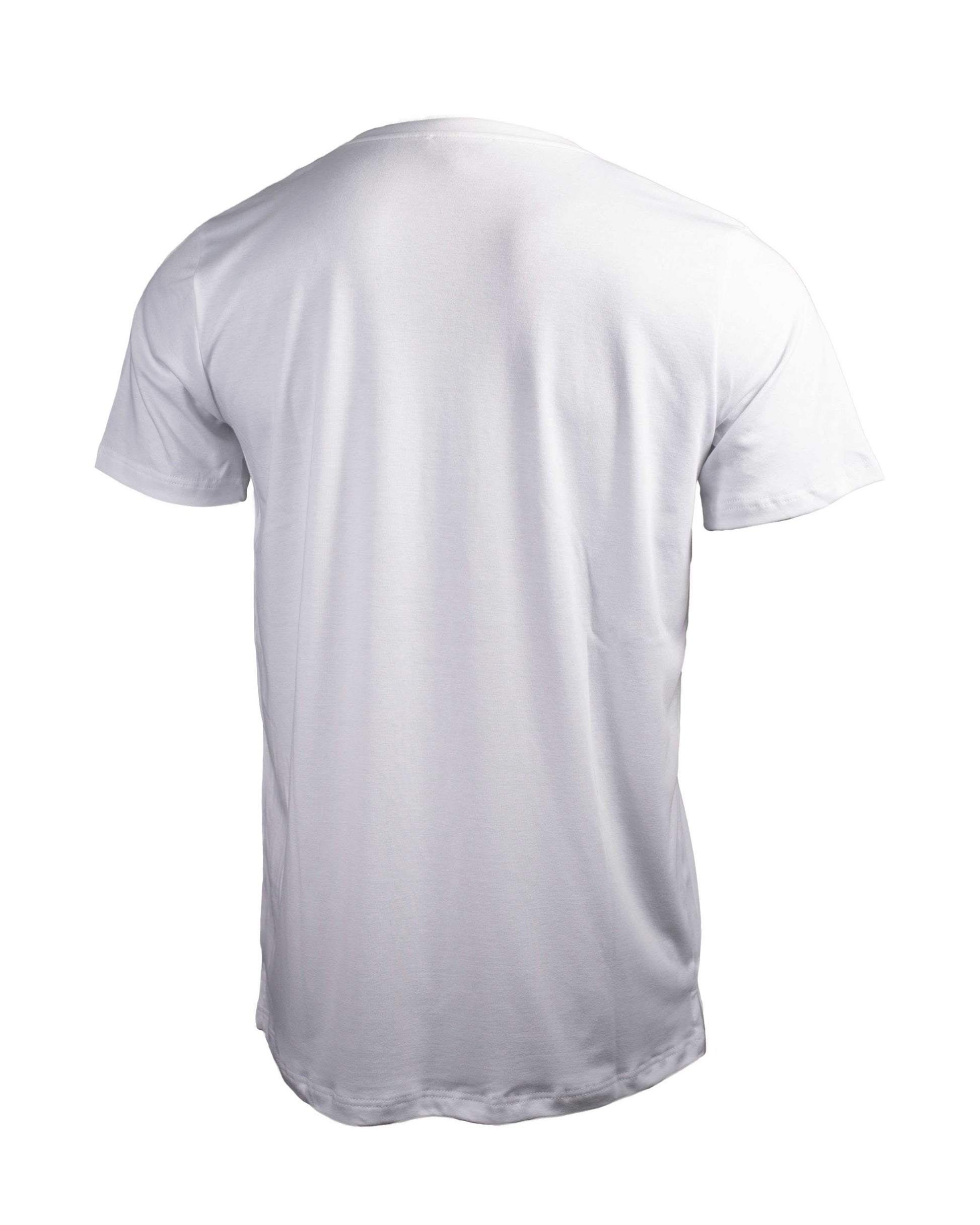 Dieses klassische, weiße T-Shirt ist ein schlichtes, vielseitig kombinierbares Basic für Herren.