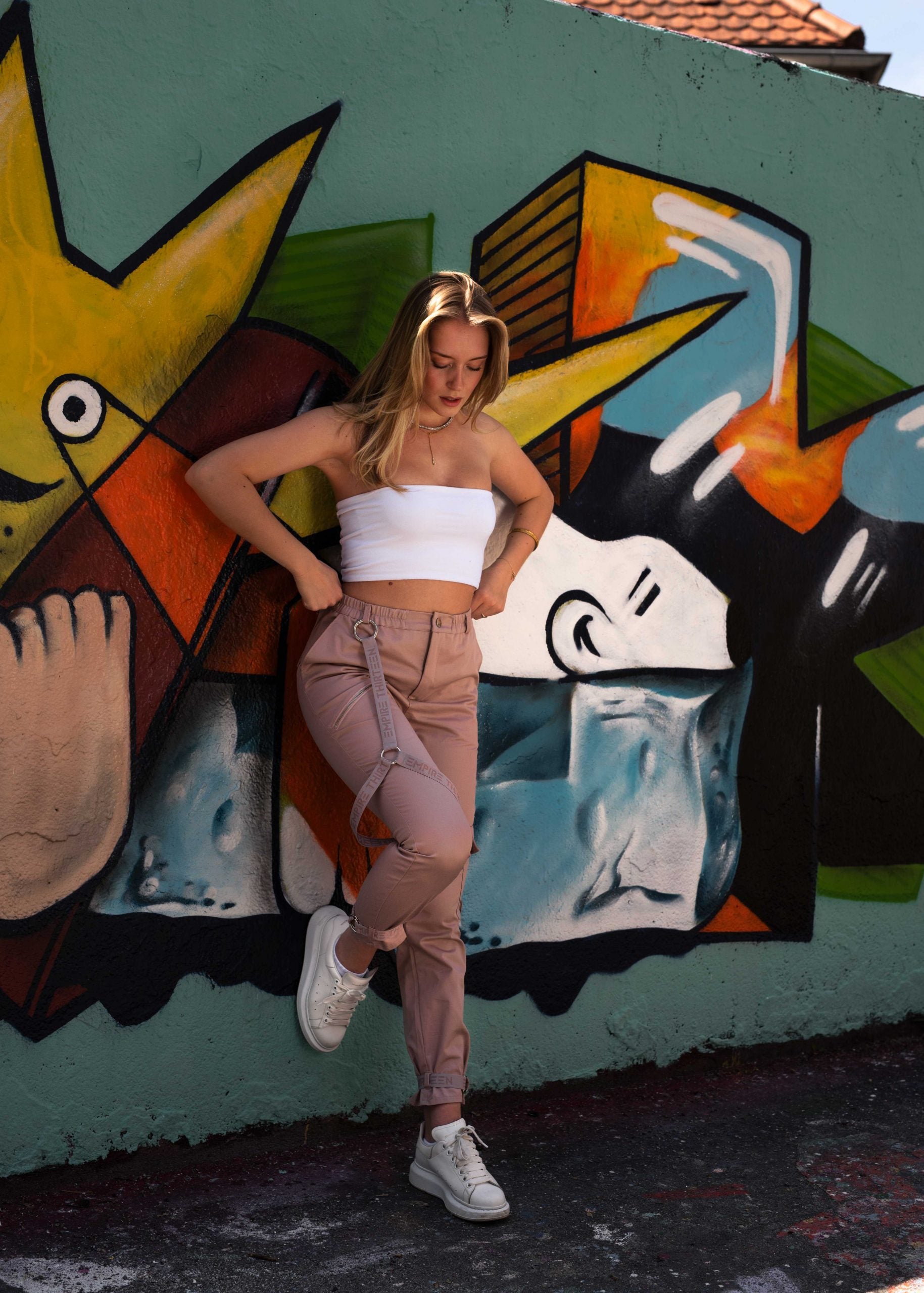 Diese modische Cargo-Hose zeichnet sich durch ihre funktionalen und zugleich trendigen Details aus.