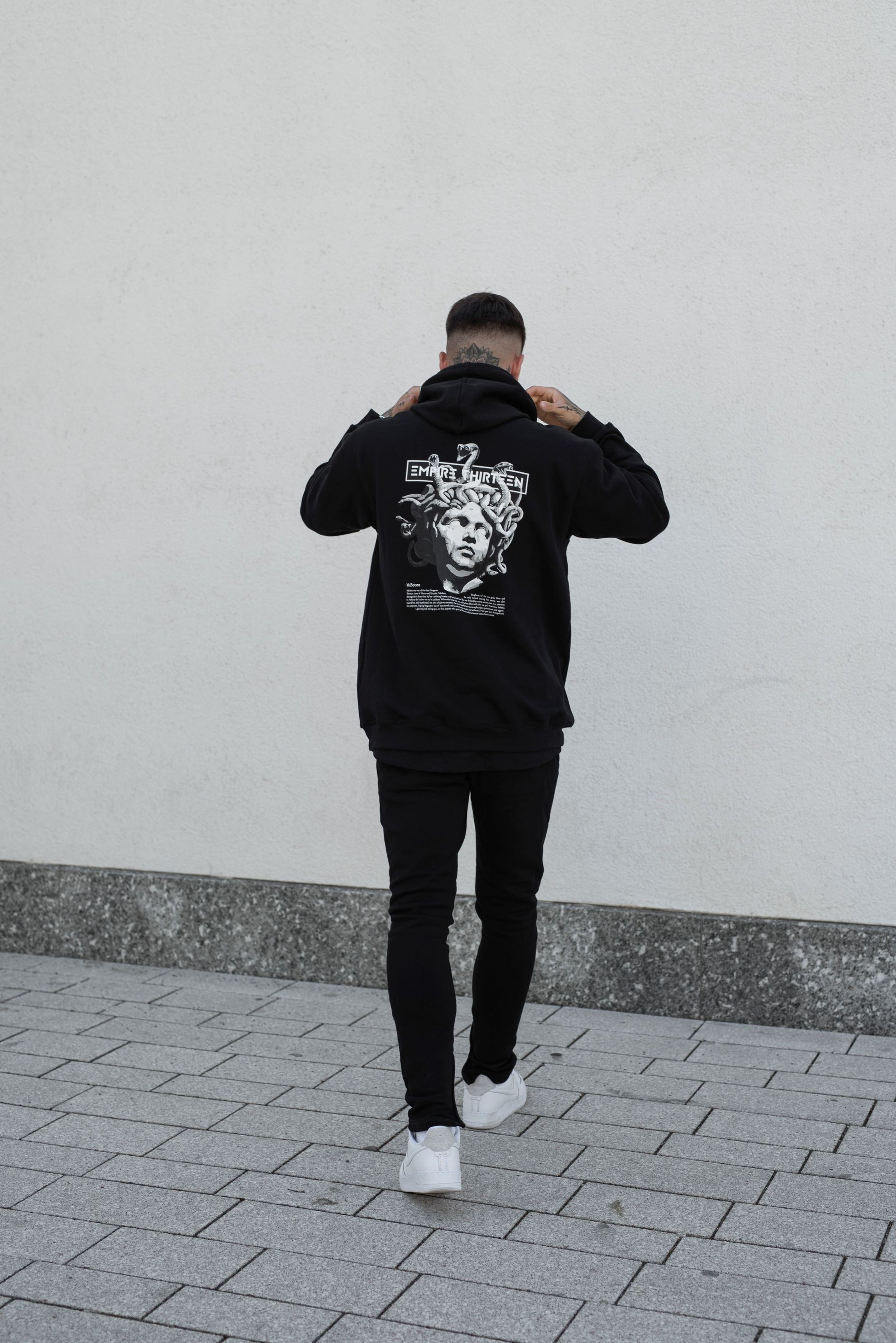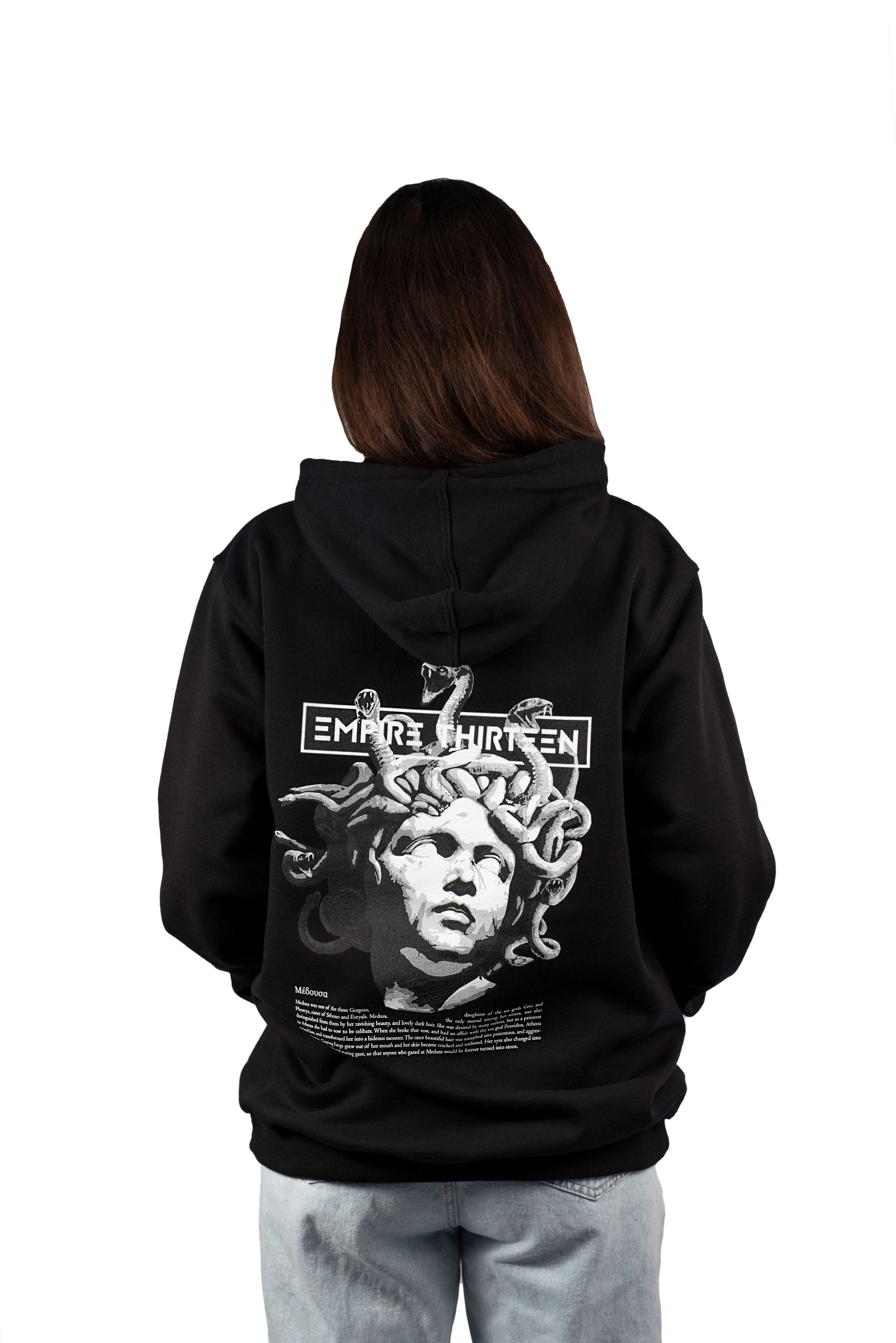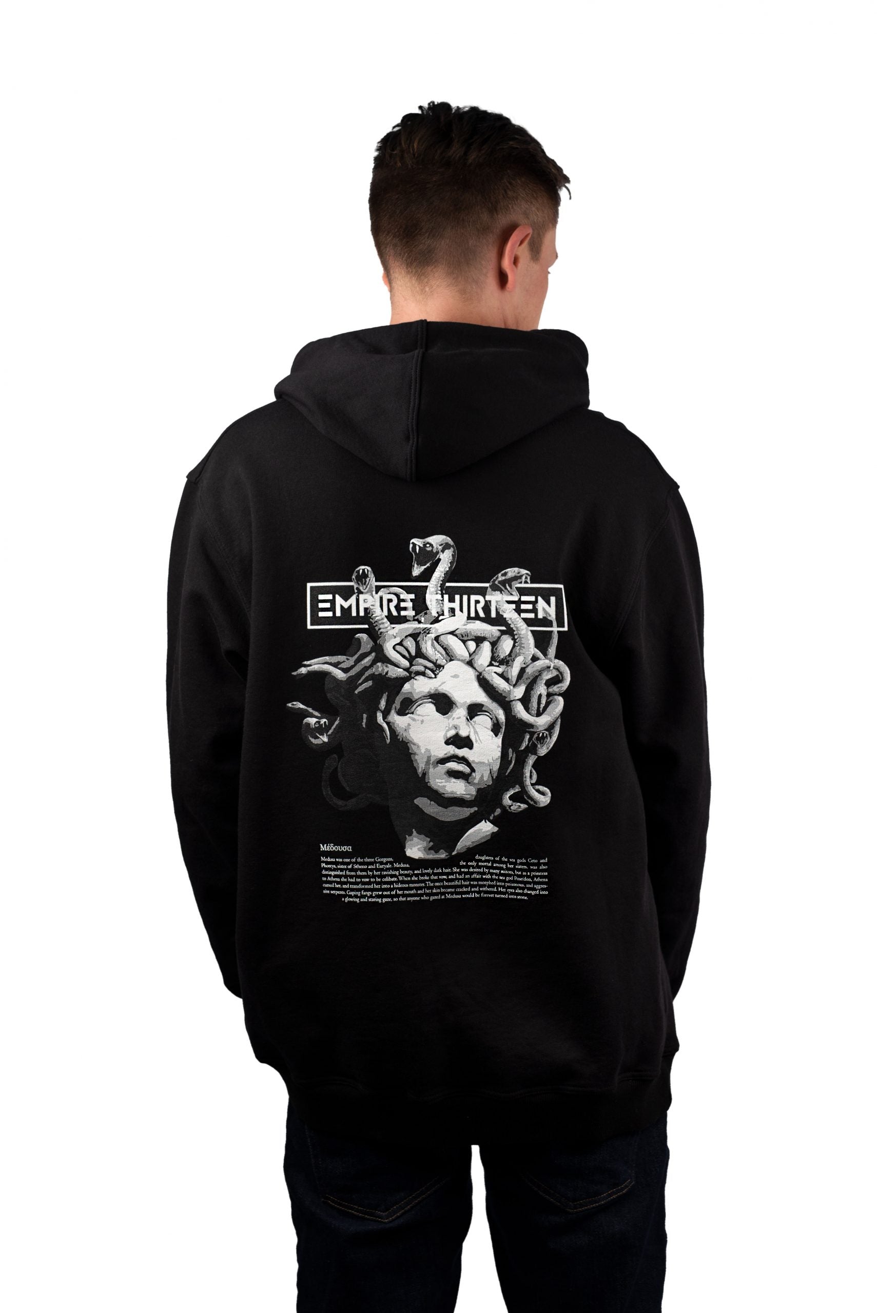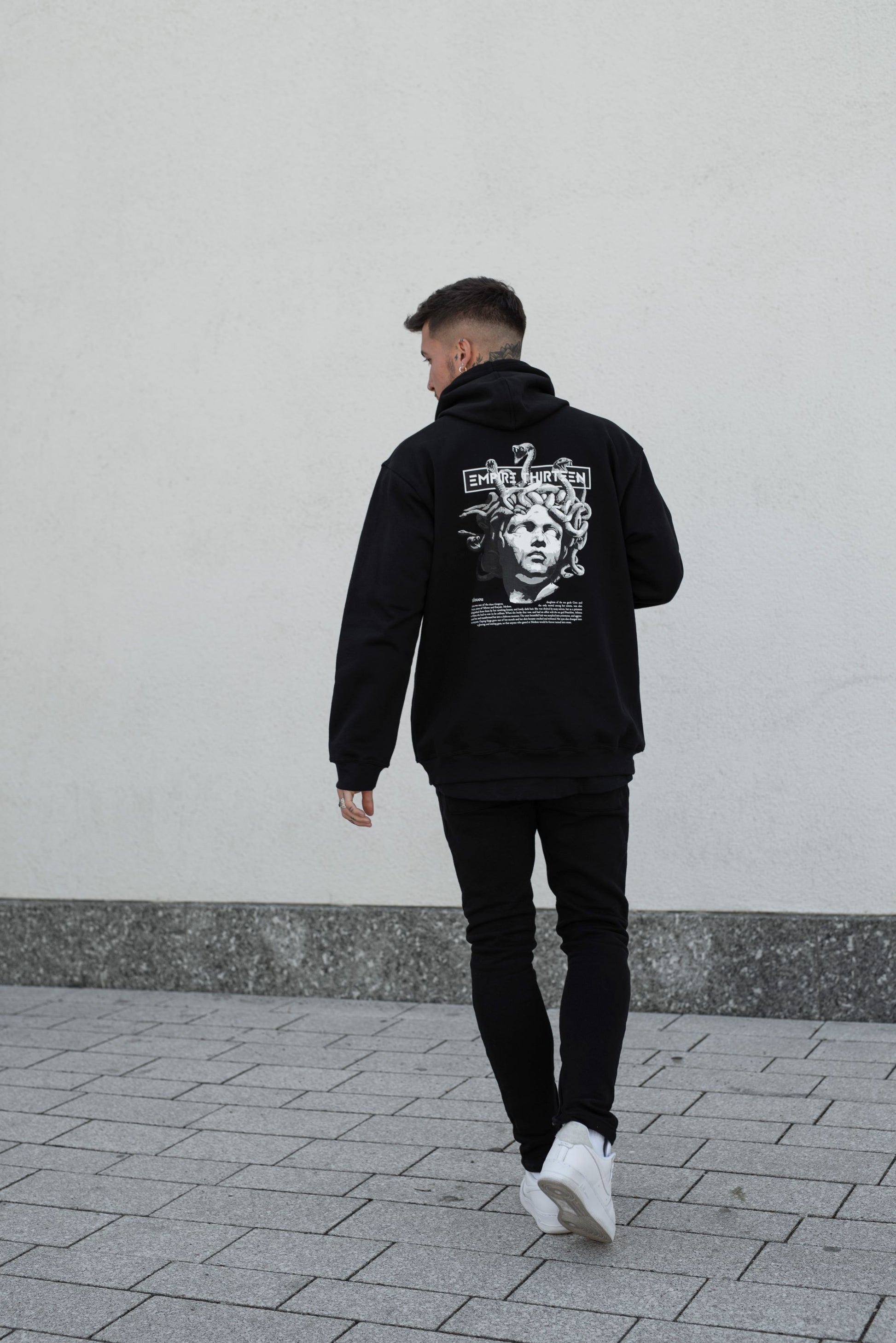 Dieser hochwertige Hoodie zeichnet sich durch einen auffälligen MEDUSA Print auf der Rückseite aus.