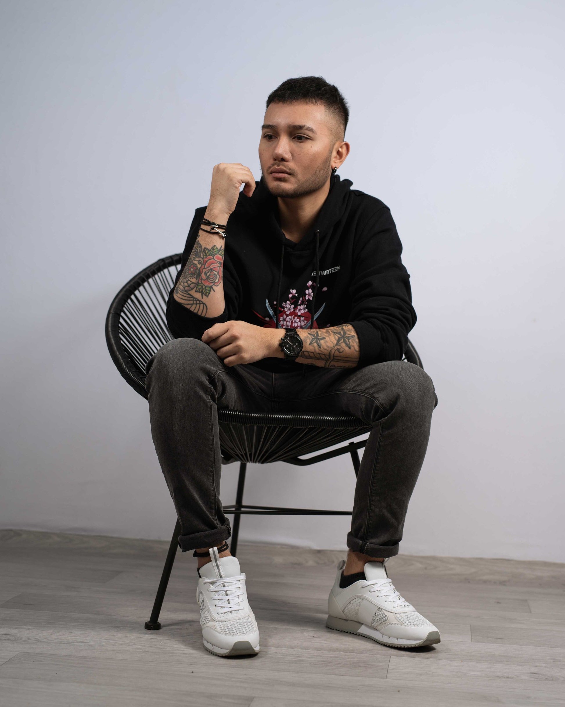 Dieser hochwertige, schwarze Hoodie bietet ein einzigartiges Design, inspiriert von japanischen Motiven.