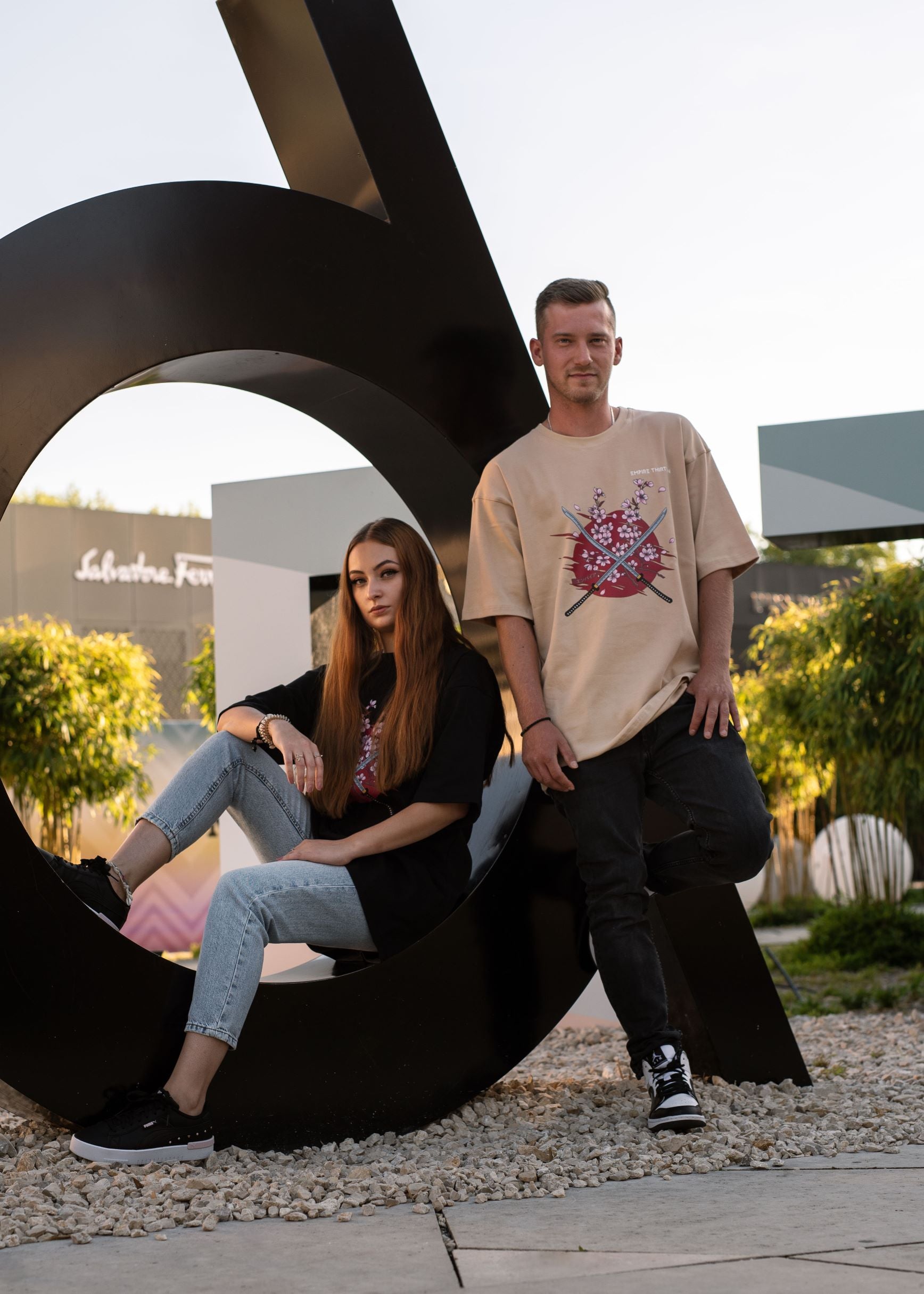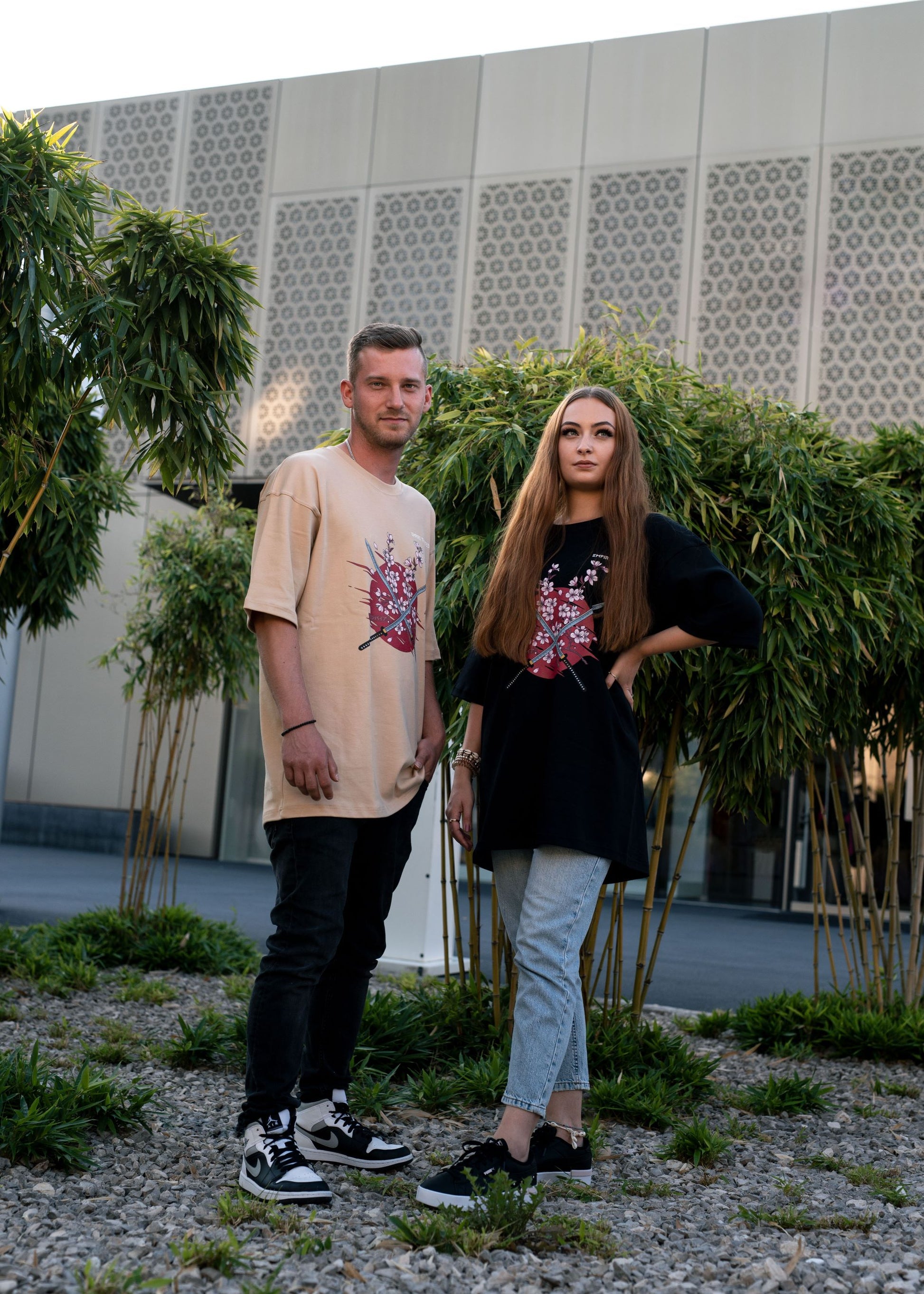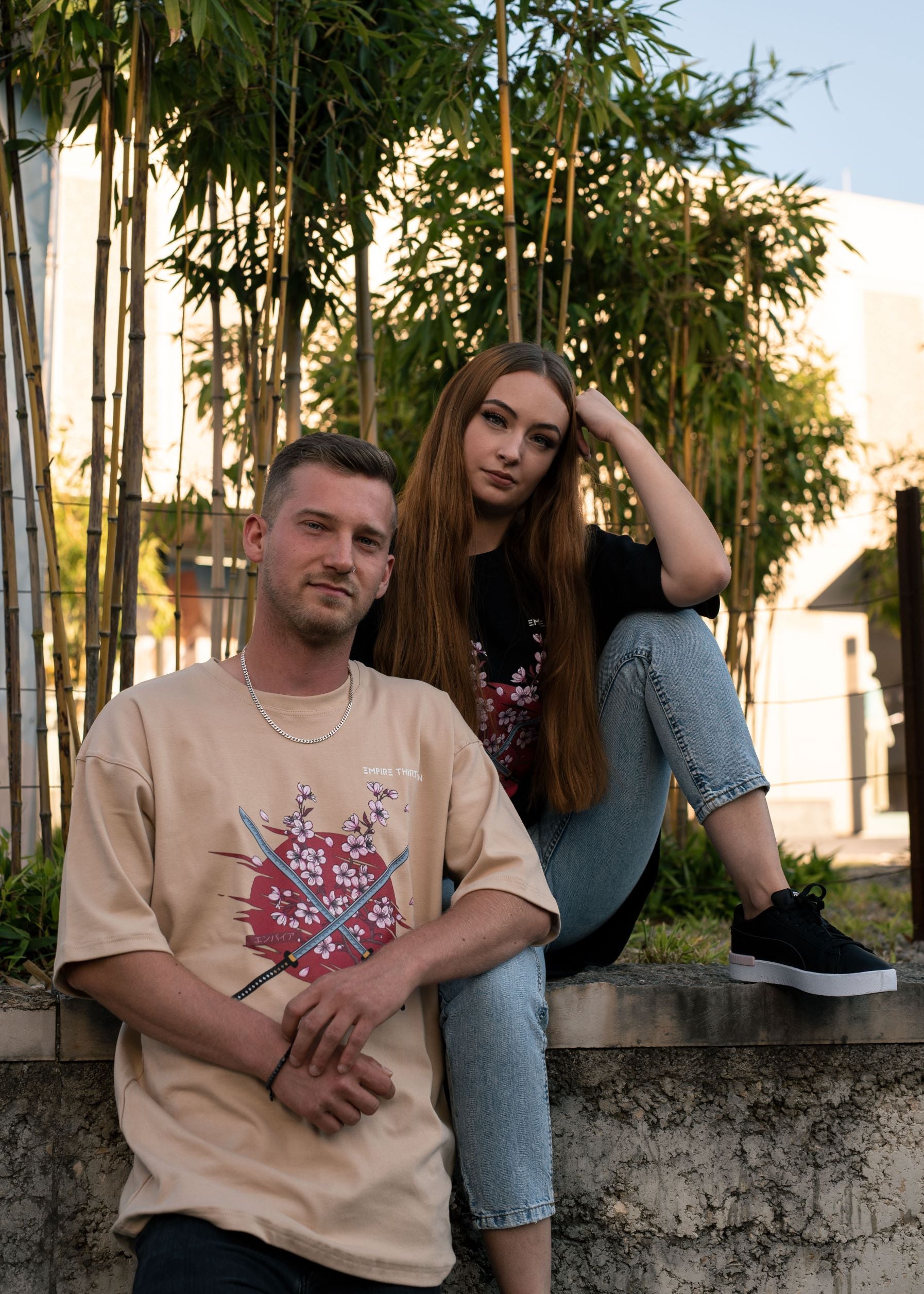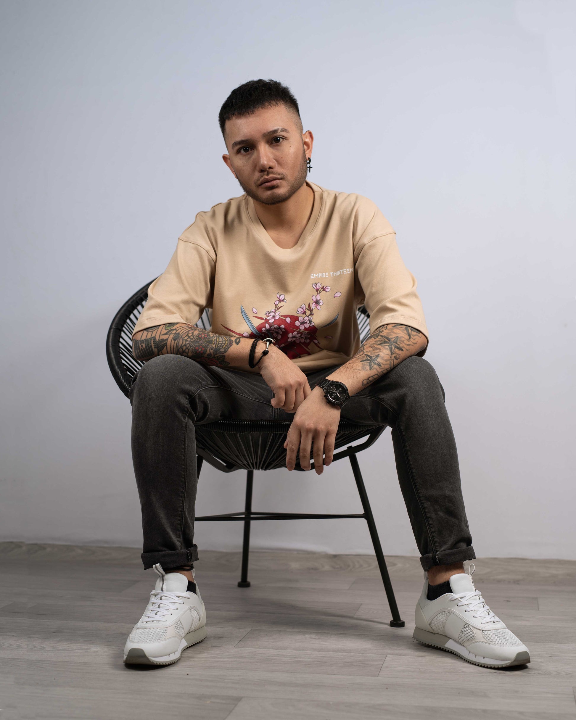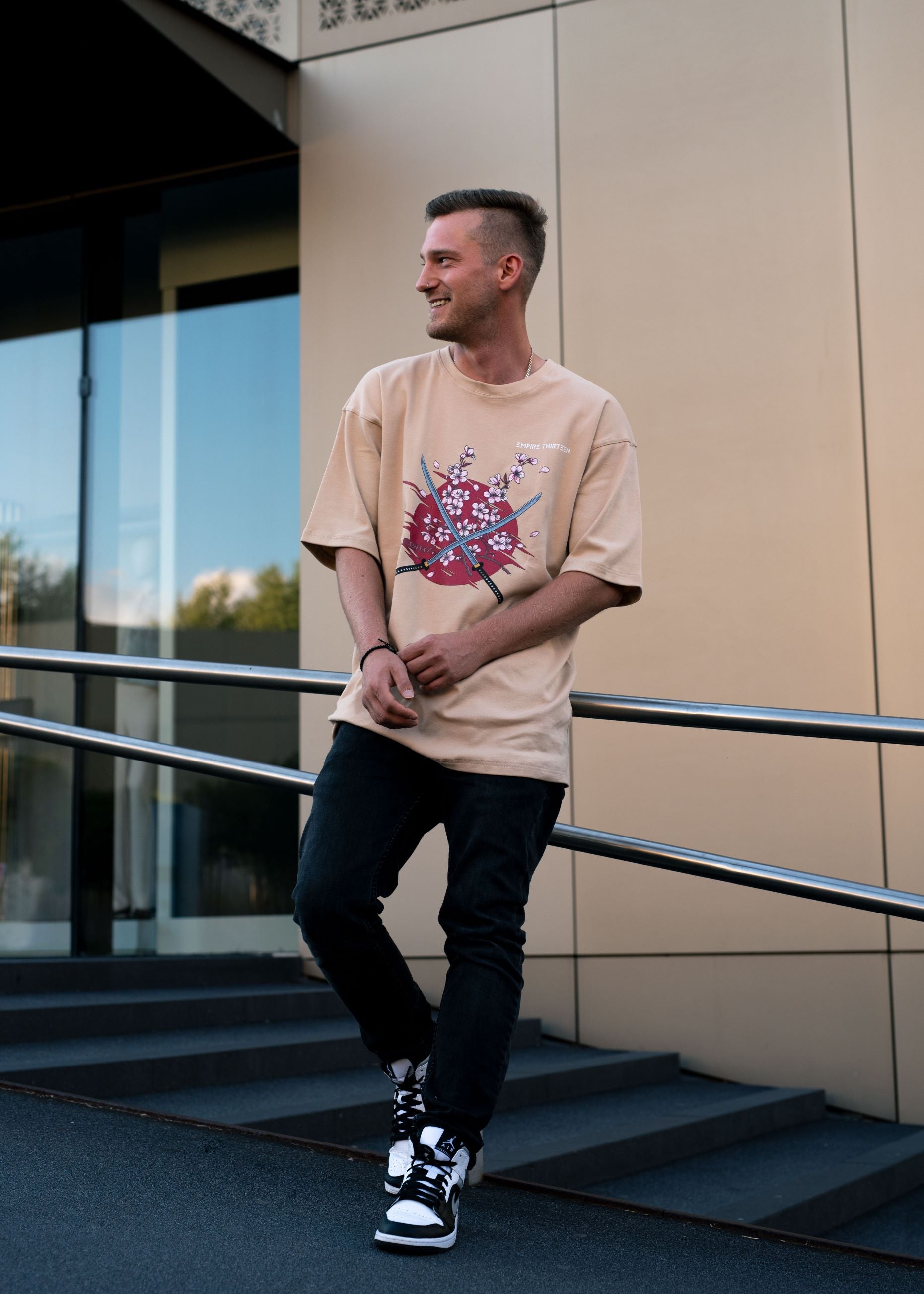 Dieses hochwertige, beige oversized T-Shirt zeichnet sich durch einen eindrucksvollen SAKURA Print auf der Vorderseite aus.