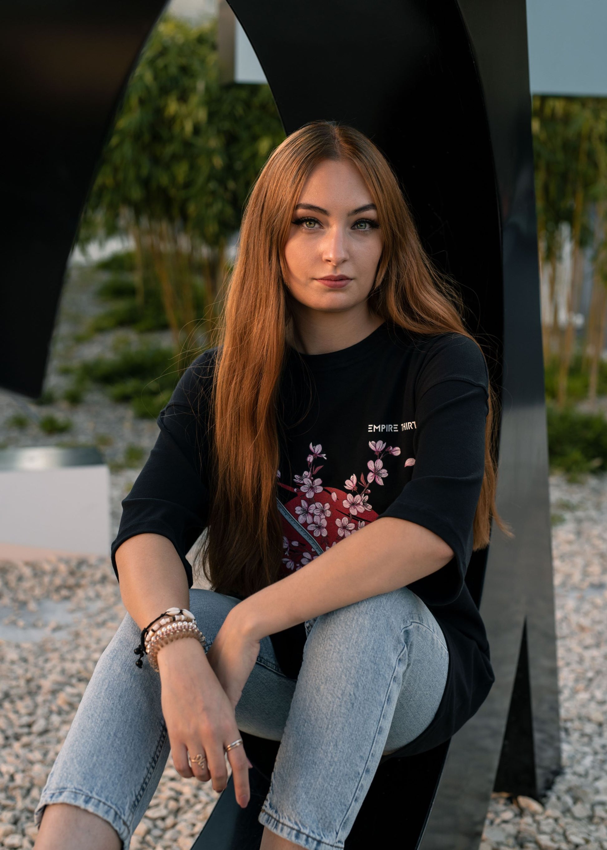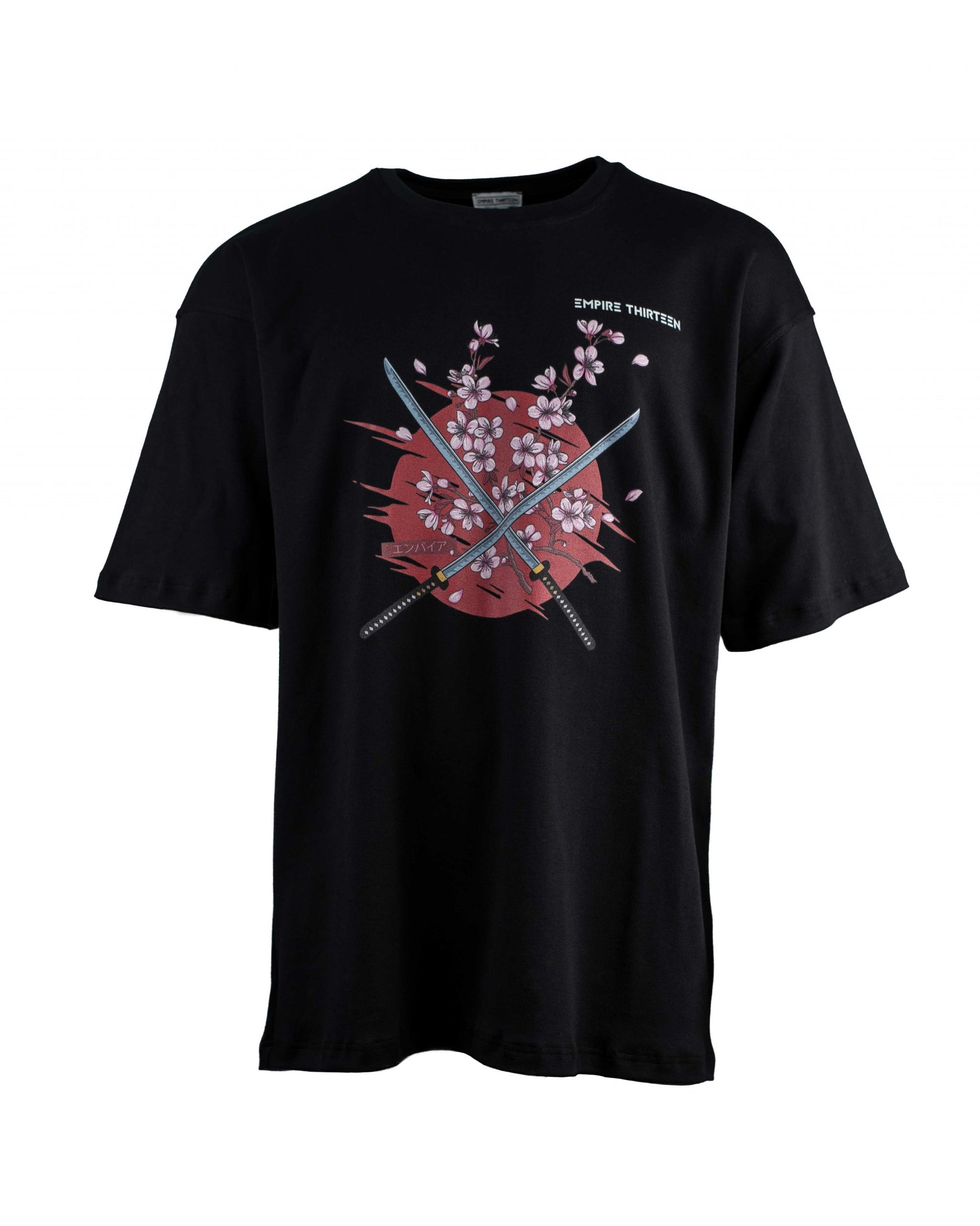 Dieses hochwertige, schwarze oversized T-Shirt zeichnet sich durch einen eindrucksvollen SAKURA Print auf der Vorderseite aus.