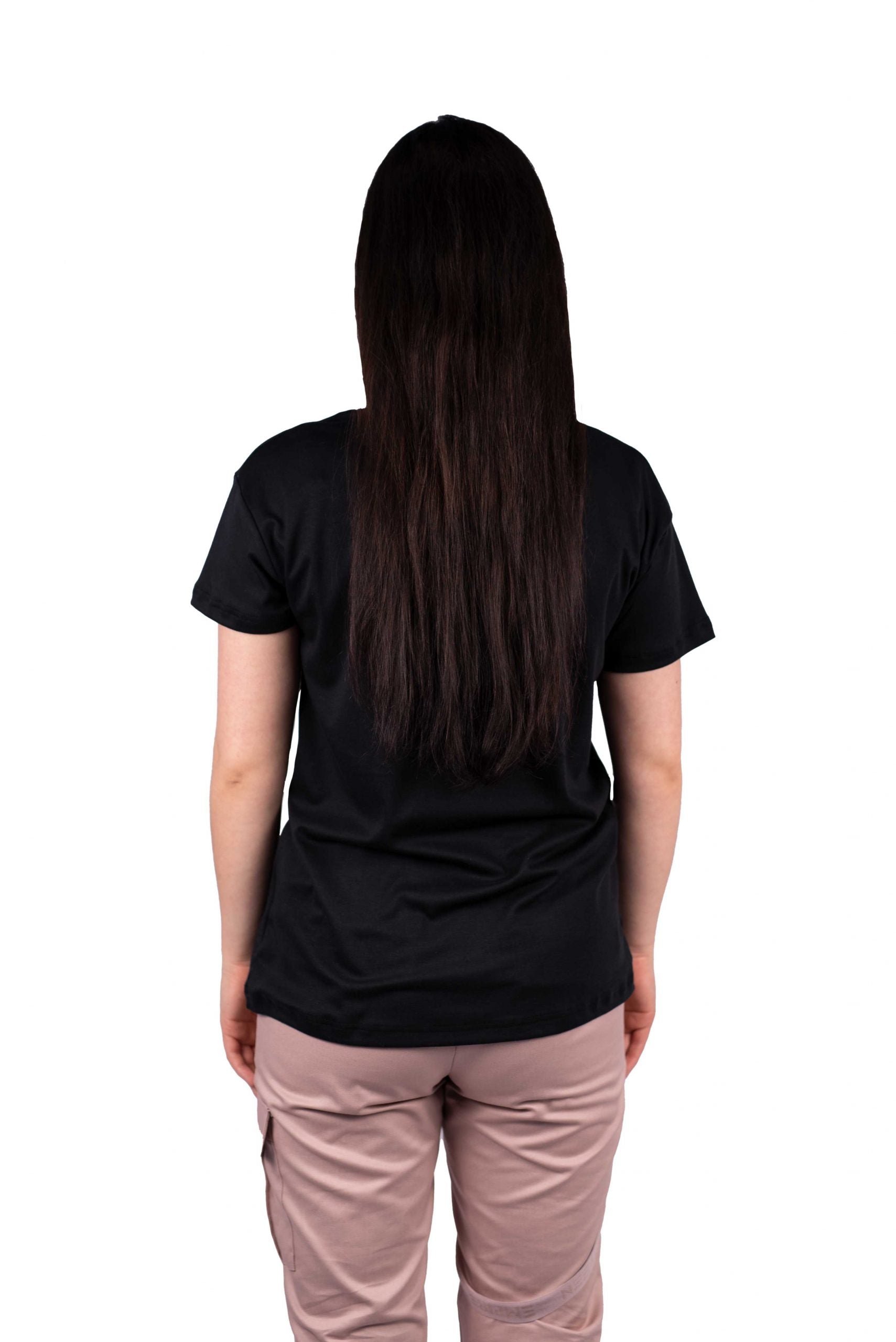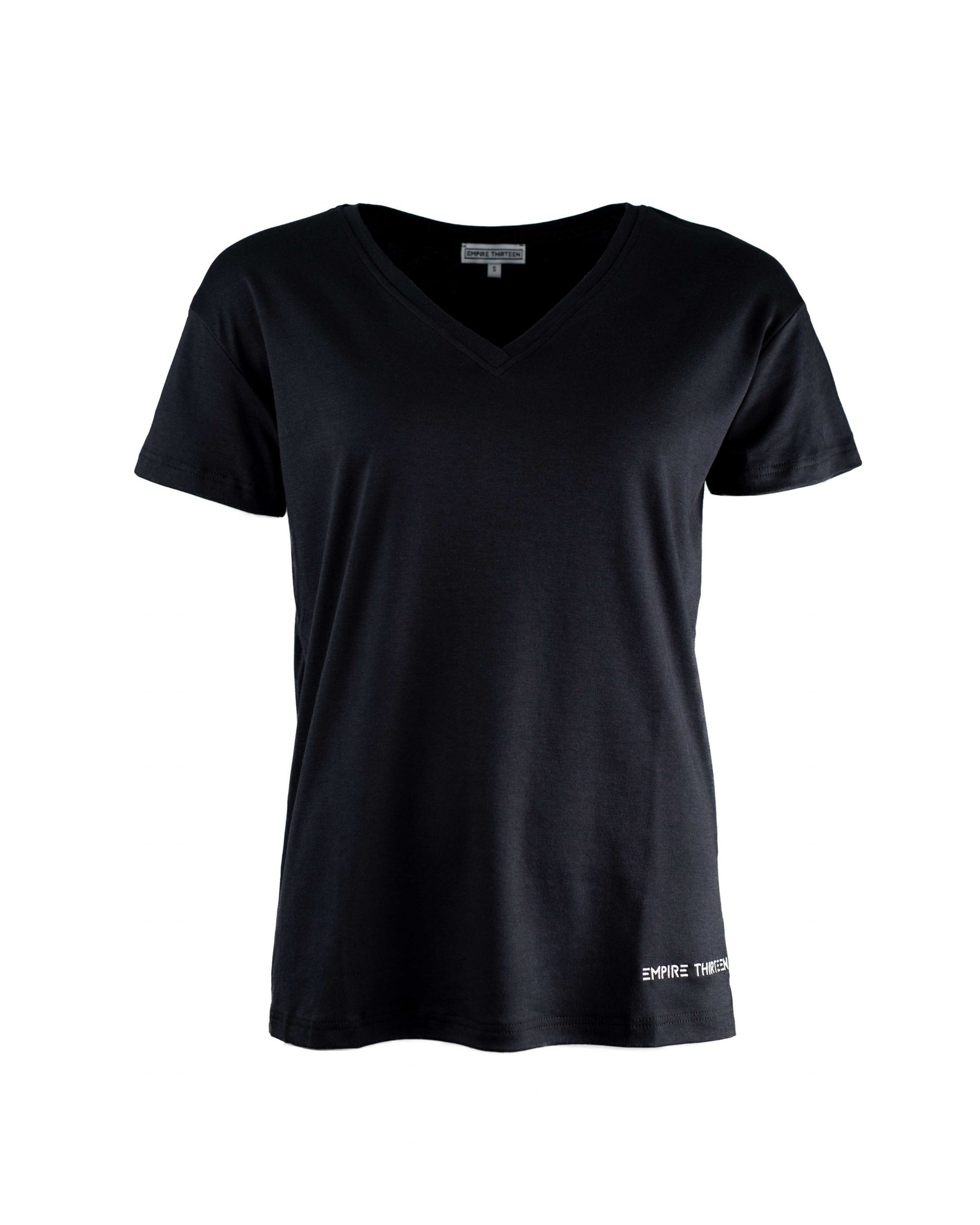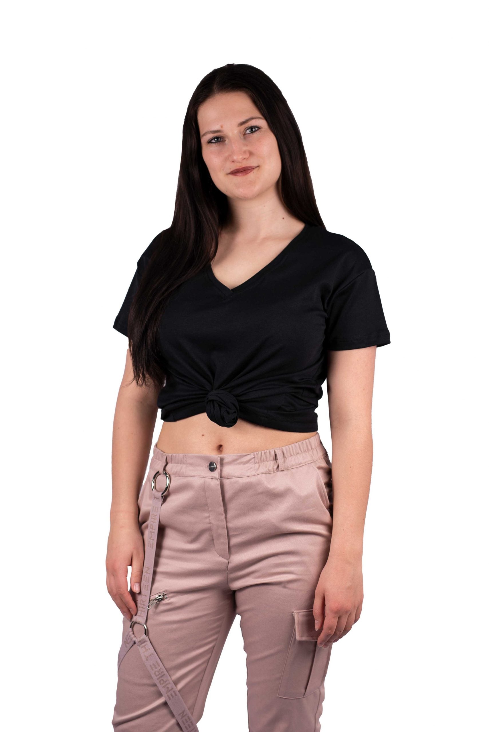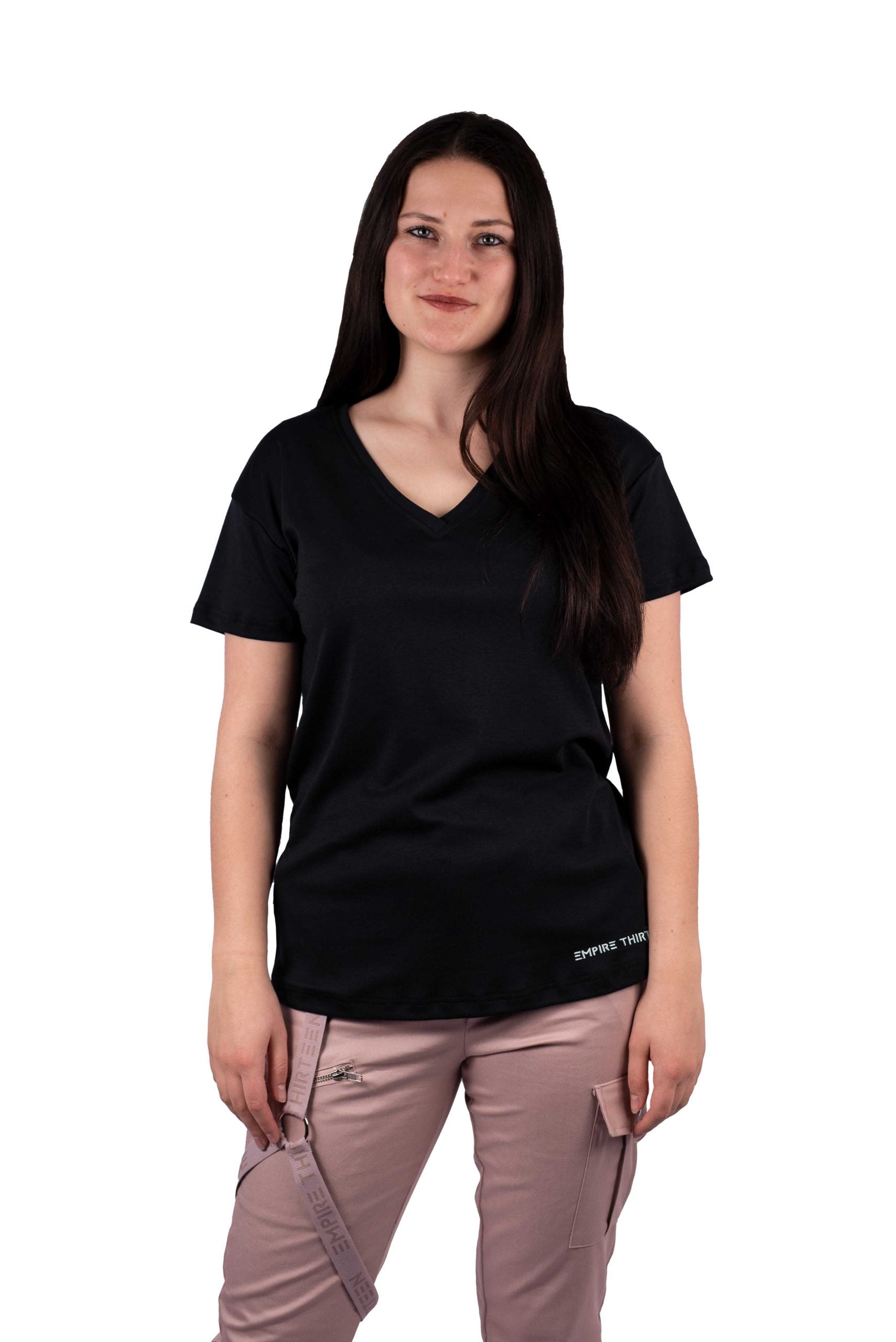 Dieses klassische, schwarze T-Shirt ist ein schlichtes, vielseitig kombinierbares Basic für Damen.