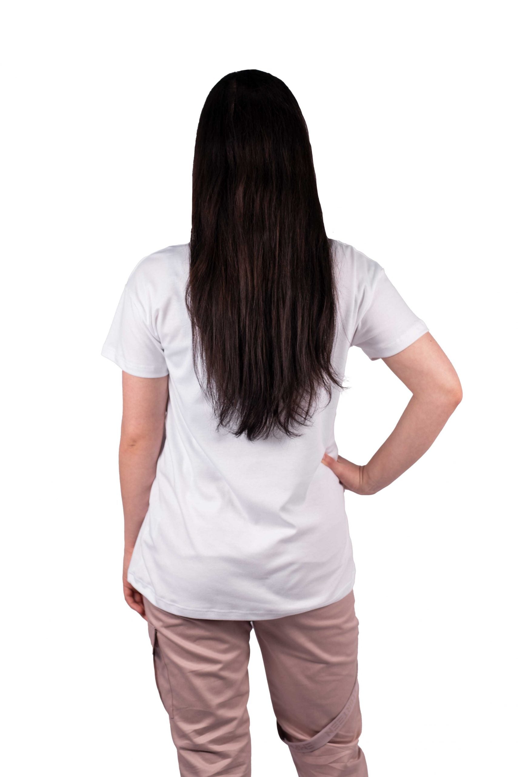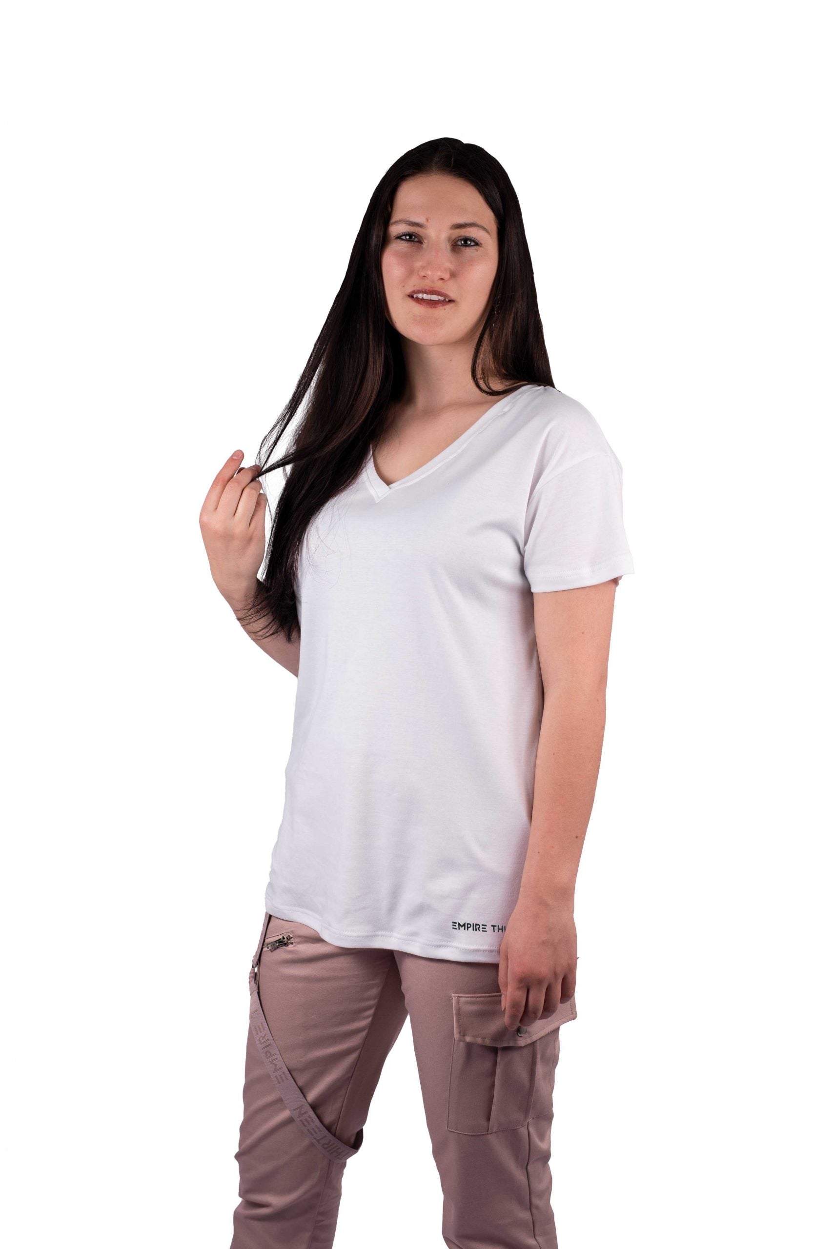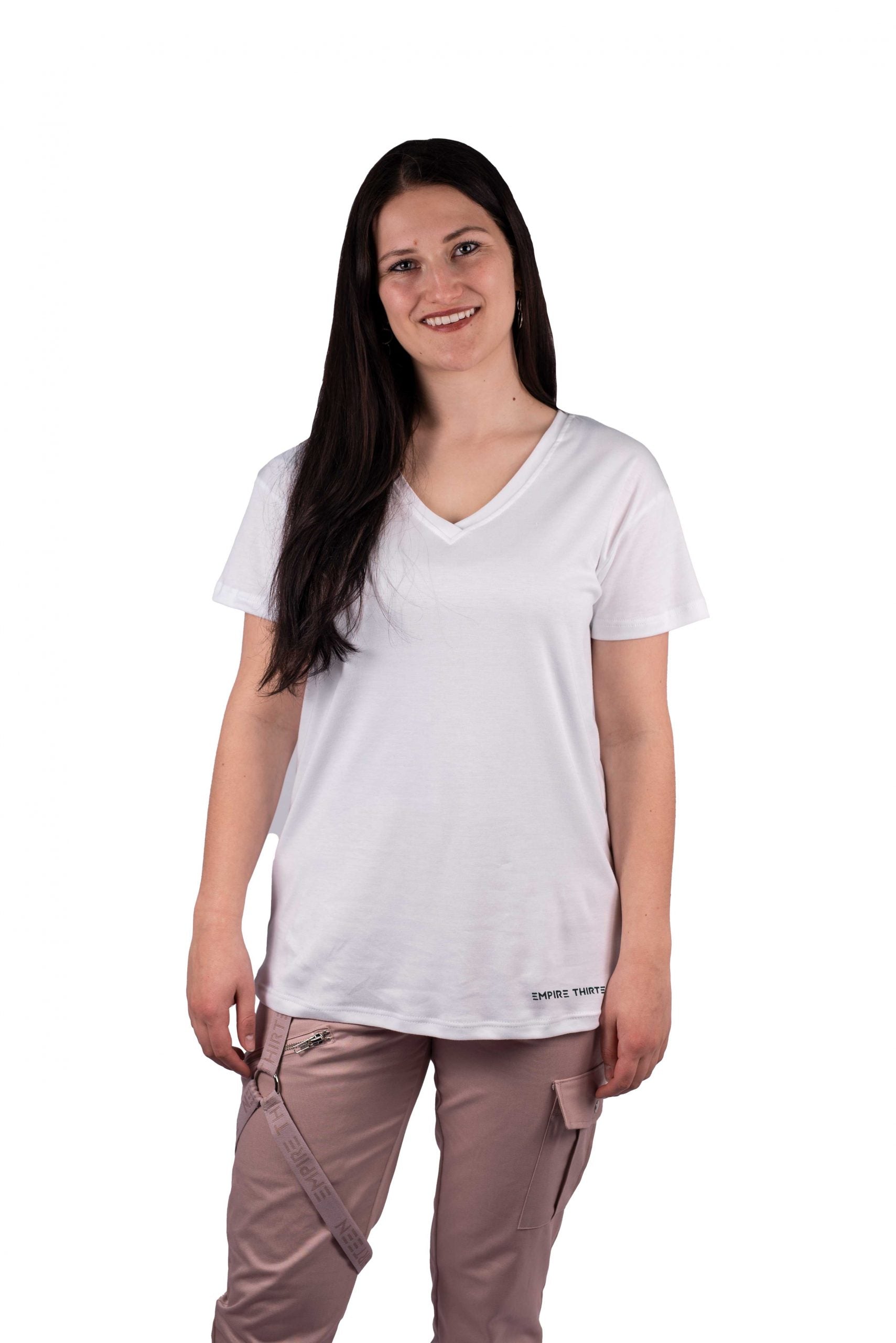 Dieses klassische, weiße T-Shirt ist ein schlichtes, vielseitig kombinierbares Basic für Damen.